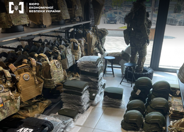 Під час обшуків у офісних і складських приміщеннях та магазинах компанії детективи БЕБ вилучили шоломи, балістичні плити та бронежилети різного класу захисту загальною вартістю понад 40 млн гривень.