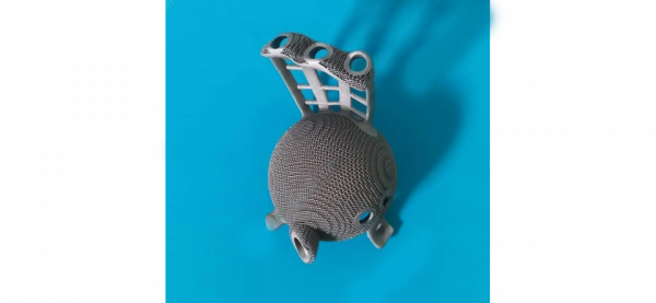 Ілюстрація демонструє трабекулярну поверхню компонента ендопротеза кульшового суглоба. Такої якості можна досягти лише за допомогою 3D – друку.