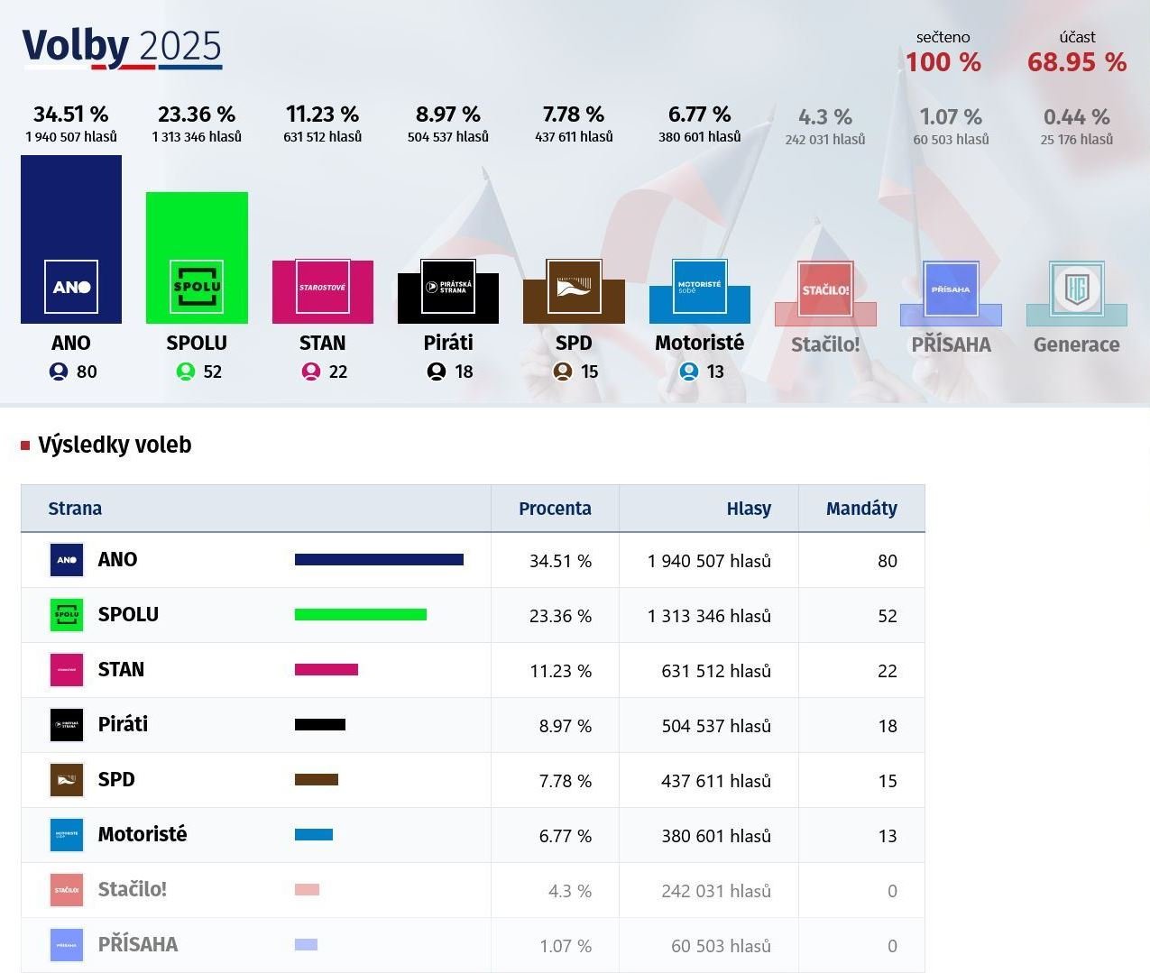 ANO + SPD + Motoristé | 111 | 🔥 Найімовірніший варіант |