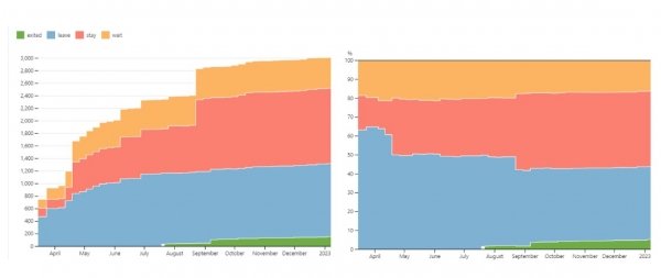 За даними KSE Institute, іноземний бізнес, який повністю покинув російський ринок, забезпечував робочими місцями 297 тис. осіб, мав $41 млрд річного доходу, $33,9 млрд капіталу та $36 млрд активів. При цьому компанії, які призупинили діяльність в РФ, мали 335,3 тис. робочого персоналу, річний дохід у розмірі $55,3 млрд, $28,9 млрд капіталу та $33,3 млрд активів.
