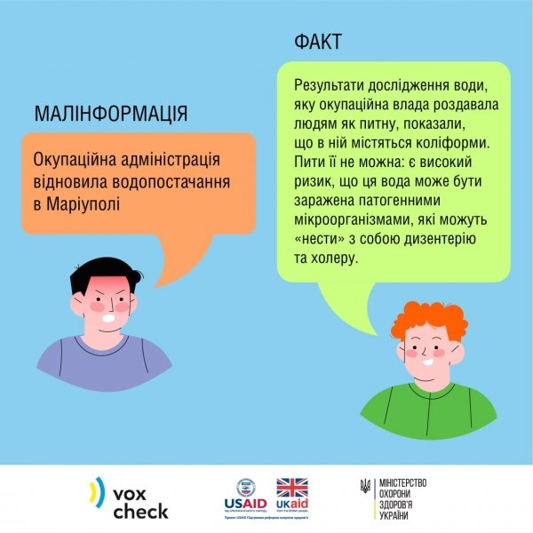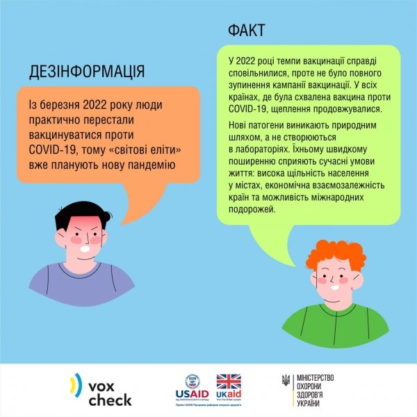 Міністерство охорони здоров'я з допомогою проєкту USAID "Підтримка реформи охорони здоров’я" та аналітичної платформи VoxCheck поділилося спростуванням міфів про суспільне здоров’я, які поширюються в інформаційному просторі України, Білорусі, Росії