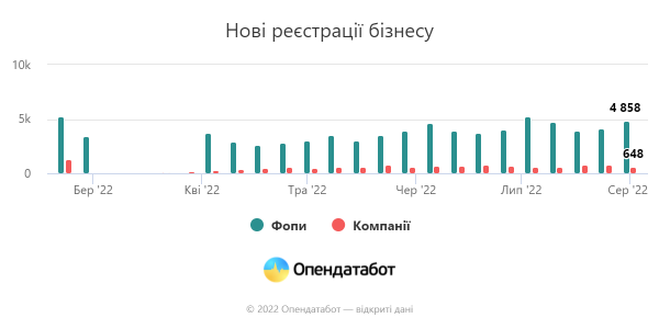 На початку липня зафіксовано новий рекорд з кількості реєстрації нових ФОПів — 5223 бізнеси. Це практично стільки ж, як було в останній тиждень перед вторгненням РФ.