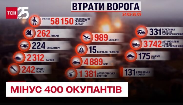 ☠ Втрати росіян на 28 вересня: за добу ліквідовано 400 окупантів