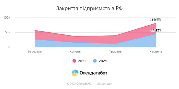 Так, з початку війни по червень поточного року закрилося 113 тисяч підприємств. Це на 17% більше, аніж у ковідному 2021, коли бізнес масово потерпав через обмеження на діяльність в пандемію.